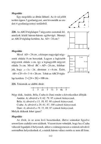 220. Az ABCD téglalapot 7 négyzetre osztottuk fel, D C