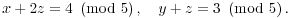 There are multiple solutions --- in fact, since there is one free variable (z), there will be 5 distinct solutions mod 5. As is customary when a system has multiple solutions, I'll write the solution in parametric form.